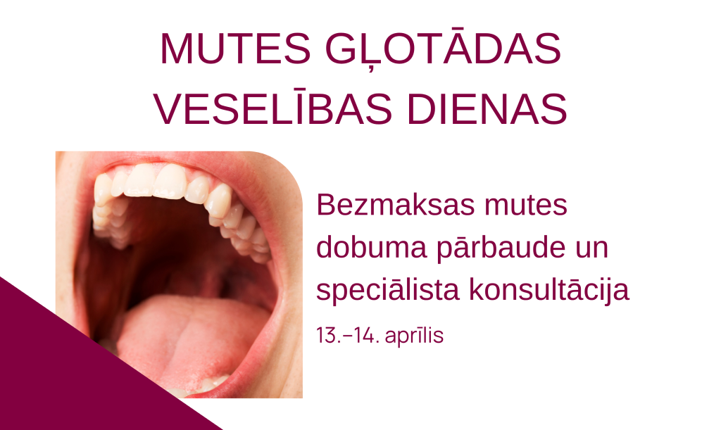 Aktualitātes Mutes gļotādas veselības dienas – bezmaksas pārbaudes Rīgas Stradiņa universitātes Stomatoloģijas institūts aicina iedzīvotājus piedalīties Mutes gļotādas veselības dienās, kuru laikā būs iespēja bez maksas pārbaudīt mutes dobuma veselību un savlaicīgi diagnosticēt iespējamās saslimšanas. Kāpēc tas ir svarīgi? Mutes dobuma slimības, tostarp ļaundabīgas izmaiņas, bieži attīstās bez izteiktiem simptomiem. Tās var izpausties kā gļotādas krāsas pārmaiņas vai ilgstoši esošas, nesāpīgas čūlas. Savlaicīga diagnostika būtiski palielina veiksmīgas ārstēšanas iespējas Ko ietver pārbaude? Akcijas laikā pacientiem tiks nodrošināta: mutes dobuma un gļotādas apskate speciālista konsultācija, ja tiks konstatētas aizdomīgas izmaiņas Nepieciešamības gadījumā var tikt veikti papildu izmeklējumi (citoloģija vai biopsija), kuru maksa ir 7,50 EUR. Kad un kur? 13. un 14. aprīlis10:00-16:00 RSU Stomatoloģijas institūtsDzirciema iela 20, Rīga (3. stāvs) Kā pieteikties? Pieteikšanās notiek no 1. līdz 10. aprīlim, zvanot pa tālruni: 27065323 Aicinām iedzīvotājus neatlikt rūpes par savu veselību – regulāras pārbaudes var palīdzēt laikus pamanīt nopietnas saslimšanas un uzsākt ārstēšanu. Akcijā piedalās speciālisti Mutes gļotādas veselības dienās pacientus konsultēs pieredzējuši speciālisti: Dr. med. Anna Ivanova – mutes, sejas un žokļu ķirurģe, P. Stradiņa Klīniskās universitātes slimnīcas Mutes, sejas un žokļu ķirurģijas centra vadītāja, RSU Mutes, sejas un žokļu ķirurģijas un mutes medicīnas katedras docente Dr. Irina Vasiļčenko – Mutes, sejas un žokļu ķirurģe P. Stradiņa Klīniskās universitātes slimnīcas Mutes, sejas un žokļu ķirurģijas centrā Dr. habil. med. Ingrīda Čēma – Mutes, sejas un žokļu ķirurģe. RSU Mutes, sejas un žokļu ķirurģijas un mutes medicīnas katedras profesore, Stomatoloģjas institūta Mutes medicīnas centra vadītāja Dr. Viktors Jankovskis – zobārsts, RSU Stomatoloģijas institūta Mutes medicīnas centrā, doktora grāda pretendents Dr. med. Madara Dzudzilo – Zobārste, asistente RSU Mutes,sejas un žokļu ķirurģijas un mutesmedicīnas katedrā Dr. Džagriti Kakare – Zobārste RSU Mutes, sejas un žokļu ķirurģijas un mutes medicīna katedrā. Doktora grāda pretendente Dr. Ilze Prikule – Mutes, sejas un žokļu ķirurģe P. Stradiņa Klīniskās universitātes slimnīcas Mutes, sejas un žokļu ķirurģijas centrā un Austrumuslimnīcas Latvijas Onkoloģijas centrā Dr. med. Guntars Selga – Mutes, sejas un žokļu ķirurgs, RSU Mutes, sejas un žokļu ķirurģijas un mutes medicīnas katedras asoc.profesors, Stomatoloģijas institūta Mutes medicīnas centra speciālists